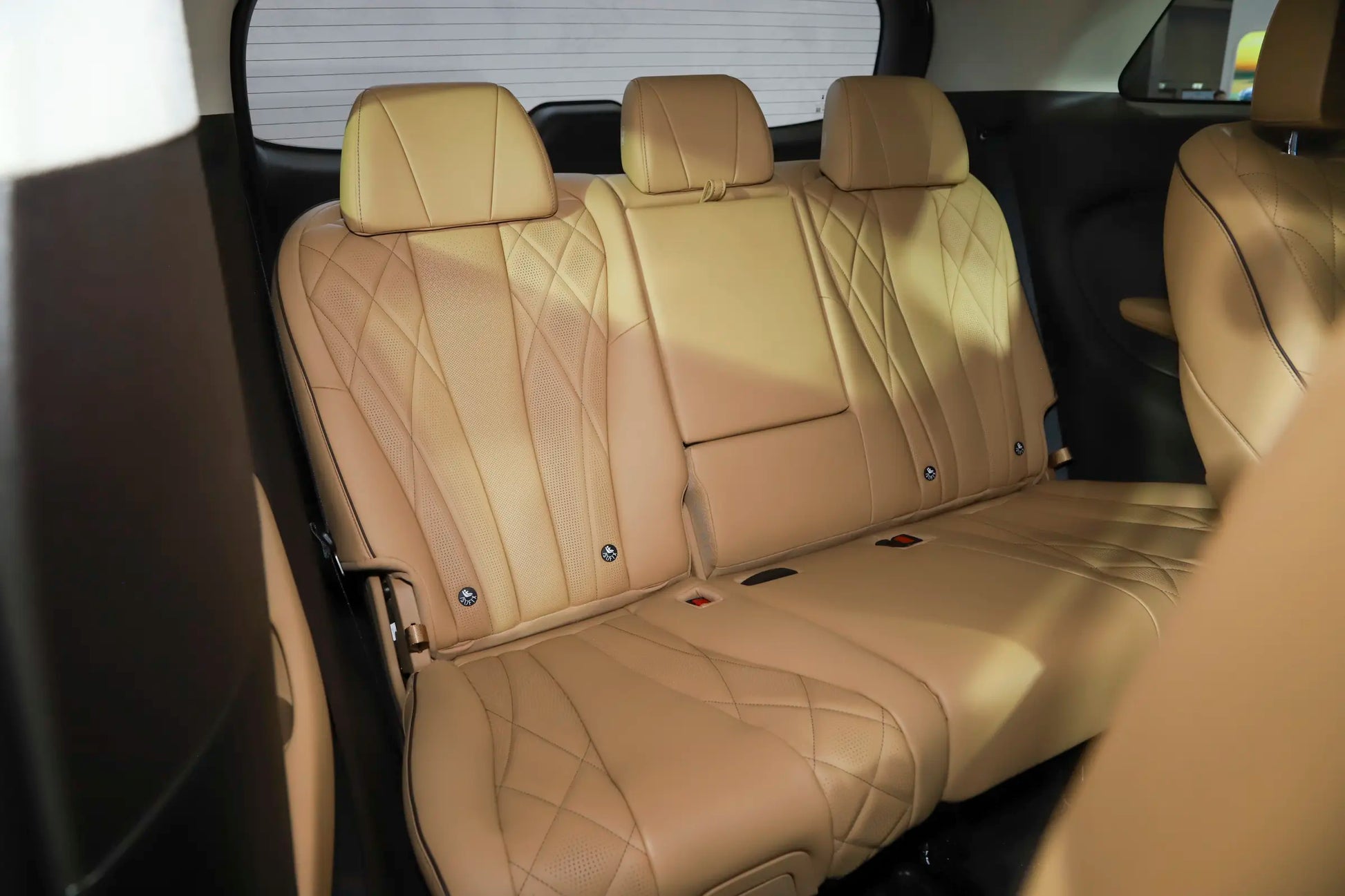 The front seats don't have strong wrap-around, but they offer sufficient support. The seats of the whole car are made of Nappa leather, with a delicate and soft texture. The second-row seats are officially called "Zero-Sense Ergonomic Seats", featuring excellent styling and wrap-around. They are equipped with the longest electric slide rails and a large tilting angle in the same class, providing an extremely comfortable experience for the second row. There is a pull-out refrigerator behind the front armrest box for the second row to use. The third-row space is not cramped, with some reserved space. Even when the car is fully occupied, the trunk can still hold seven 20-inch suitcases.