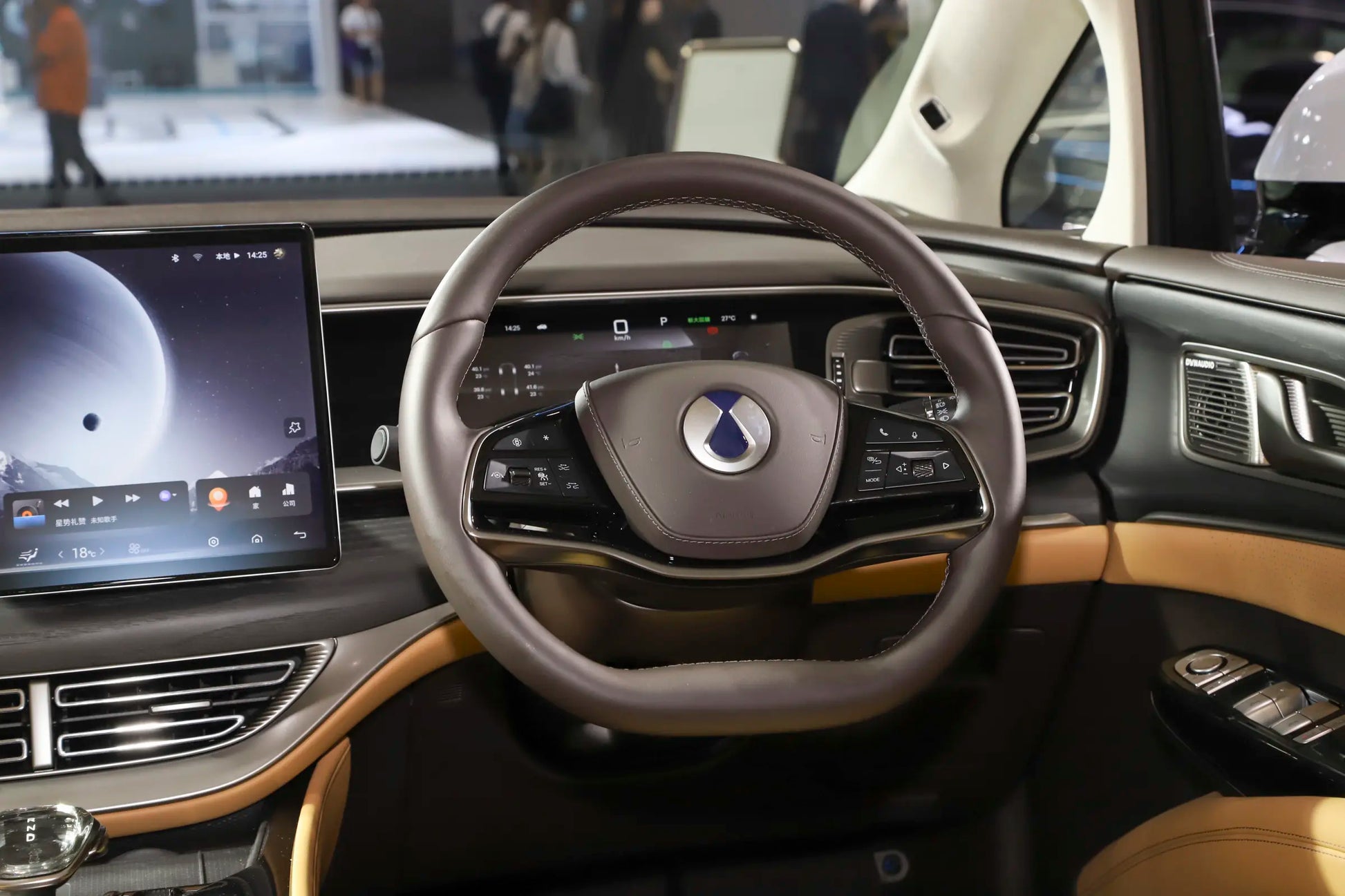 In terms of the interior, this D9 also showcases its unique sense of sophistication and technological atmosphere from various aspects. First of all, the center console adopts a wraparound layered design concept, and a large area is wrapped with leather and soft materials. The 10.25 - inch instrument panel + 15.6 - inch central control screen also meet the technological standards expected at this price point. Additionally, the crystal gear lever, in - car ambient lighting, and unique air vents all add a bit more refinement.
