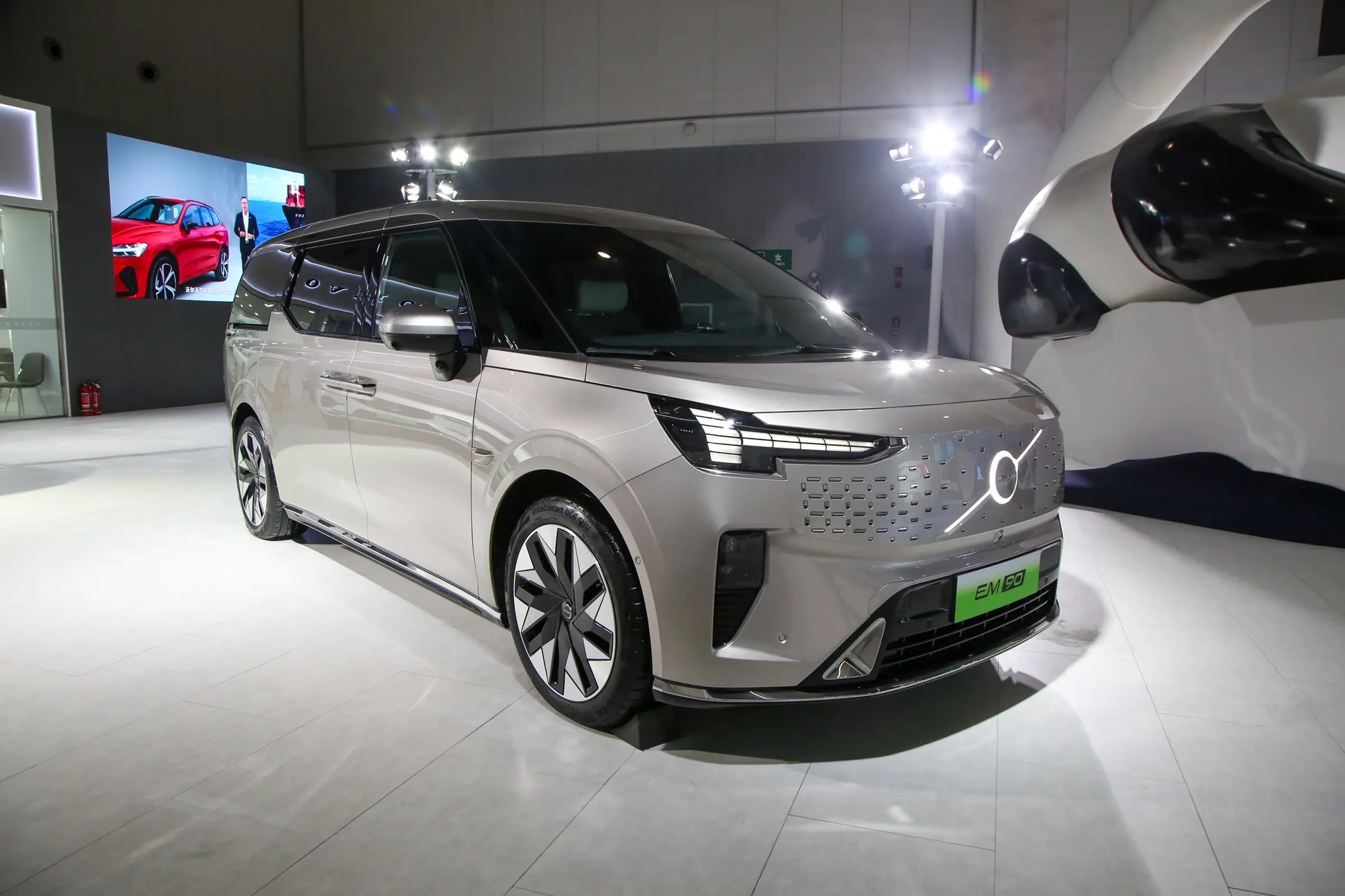 استعرنا سيارة فولفو EM90 لتجربة قيادة. أولاً، لنلقِ نظرة سريعة على تصميمها الخارجي. هذه السيارة بلون رمادي محيطي، وأعتقد أنها ستكون أكثر روعةً باللون الأسود. تتميز الواجهة الأمامية بتصميمها التقليدي المغلق للسيارات الكهربائية. يمكن إضاءة نقش النجوم والشعار الداخلي. أما الشبك السفلي، فيتميز بشبك نهري ديناميكي مرصع بالنجوم. على كلا الجانبين، لا تزال المصابيح الأمامية الكلاسيكية من طراز Thor's Hammer، بمظهر بسيط للغاية. يبلغ الطول الإجمالي للسيارة 5,206 ملم، مما يجعلها تبدو طويلة جدًا. إنها مربعة الشكل ومنتظمة، بقاعدة عجلات طولها 3,205 ملم. كما أن الجزء الخلفي مربع الشكل، على غرار العديد من سيارات الـ MPV المتوفرة في السوق. الميزة المميزة هي المصابيح الخلفية على كلا الجانبين. يُضفي التصميم إحساسًا بناطحات السحاب المنعكسة على الماء.